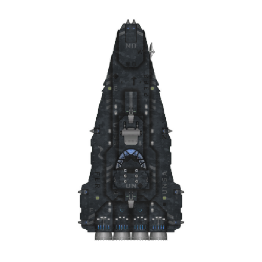 The UN Battleship, being called "The most heavily armed ship in The Colonies " has a massive frame, which while making it vulnerable to LRPT fire, allows it to tank the firepower of entire fleets. Its 28 military grade turrets and 20 torpedo launchers allow the vessel to deal considerable damage to anything within its range while the internally stored plasma warheads allow for long distance combat as well as orbital bombardment operations which while the UN would have no need to do, could theoretically be carried out by this ship. Called out for its overkill weapons systems compared to any other ship in the colonies, The UN maintains that such vessels will be needed for the future yet fails to disclose why, with the 5 in service currently positioned in orbit of large, northern colonies like Epsilon Aturnons and Corsus VII and more currently under construction, The Europa, Agatha King and Leonidas all currently under construction at Bernard Shipyards at Omega Periallus VIII's 3rd moon.