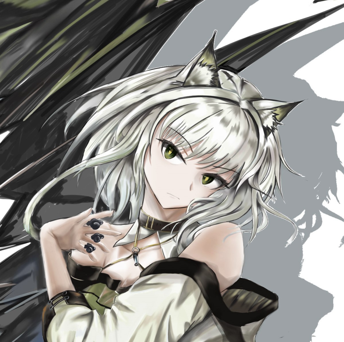 As the steel door opens, the first thing the duo sees is the green cat, Kal'tsit, drinking a glass of champagne elegantly alone in front of while . Noticing the entry of the two, Kal'tsit softly greets them, before resuming her interesting mix of alcohol and knowledge. While occasionally, shadows seemed to be abnormally fading in and out in this particular room with each blinking of the eyes.