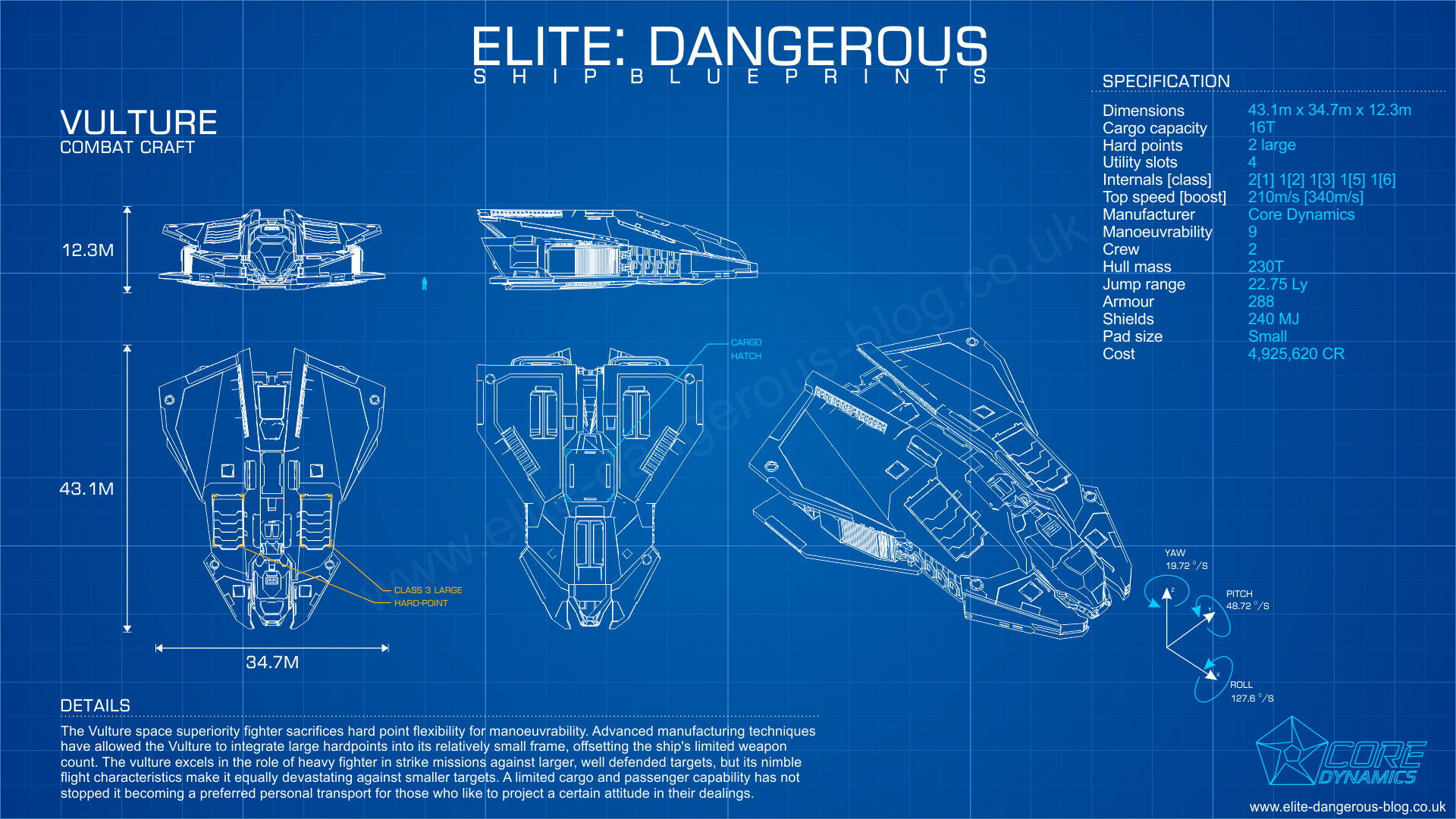 oh so you are making the vulture good job altho the vulture in elite only has 2 large hard points so remove all the weapons except the cannons.